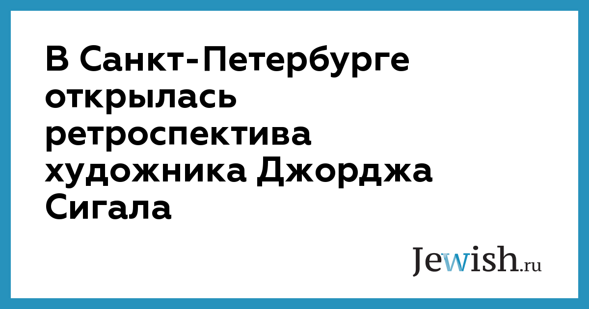 7 августа в залах Главного штаба Санкт-Петербурга открылась ретроспектива американского художника Джорджа Сигала (1924--2000). 98 произведений -- скульптура, живопись, графика -- представляют главные этапы творчества этого крупнейшего американского мастера. Критика, заметившая Сигала в конце 50-х годов, сначала наклеила на художника ярлык поп-артиста. На самом деле его творчество отображает все важнейшие течения американской культуры середины XX века: абстрактный экспрессионизм, поп-арт, минимализм. Сигал прославился своими энвайронментами (от английского environment -- естественное окружение, среда), скульптурными муляжами, помещенными среди реальных объектов жизни, например рядом с указательным столбом или автобусными поручнями. Муляжи Сигала -- это в основном слепки с настоящих фигур, выполненные из медицинских бинтов с гипсом. В поздний период творчества художник часто раскрашивал свои скульптуры. По признанию Сигала, цветные фигуры производили на него впечатление карнавала.Выставка Джорджа Сигала организована Государcтвенным Эрмитажем совместно с Фондом Джорджа Сигала, Художественным музеем Зиммерли при Государственном университете Ратгерса (Нью-Брансвик, Нью-Джерси, США).