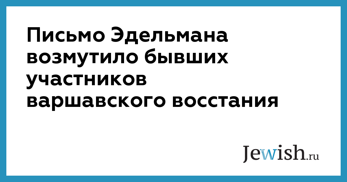 Письмо Эдельмана возмутило бывших участников варшавского восстания