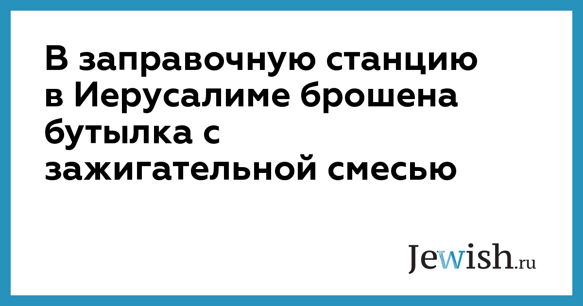 В заправочную станцию в Иерусалиме брошена бутылка с зажигательной смесью
