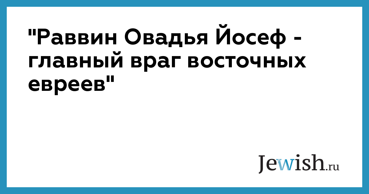 "Раввин Овадья Йосеф — главный враг восточных евреев"