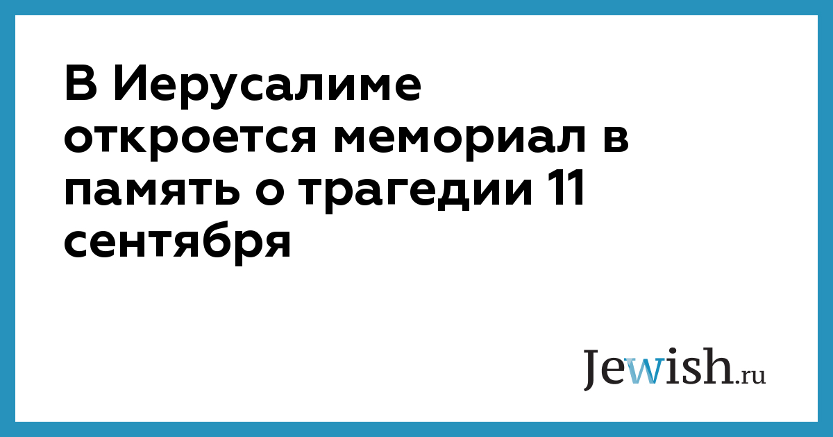 В Иерусалиме откроется мемориал в память о трагедии 11 сентября
