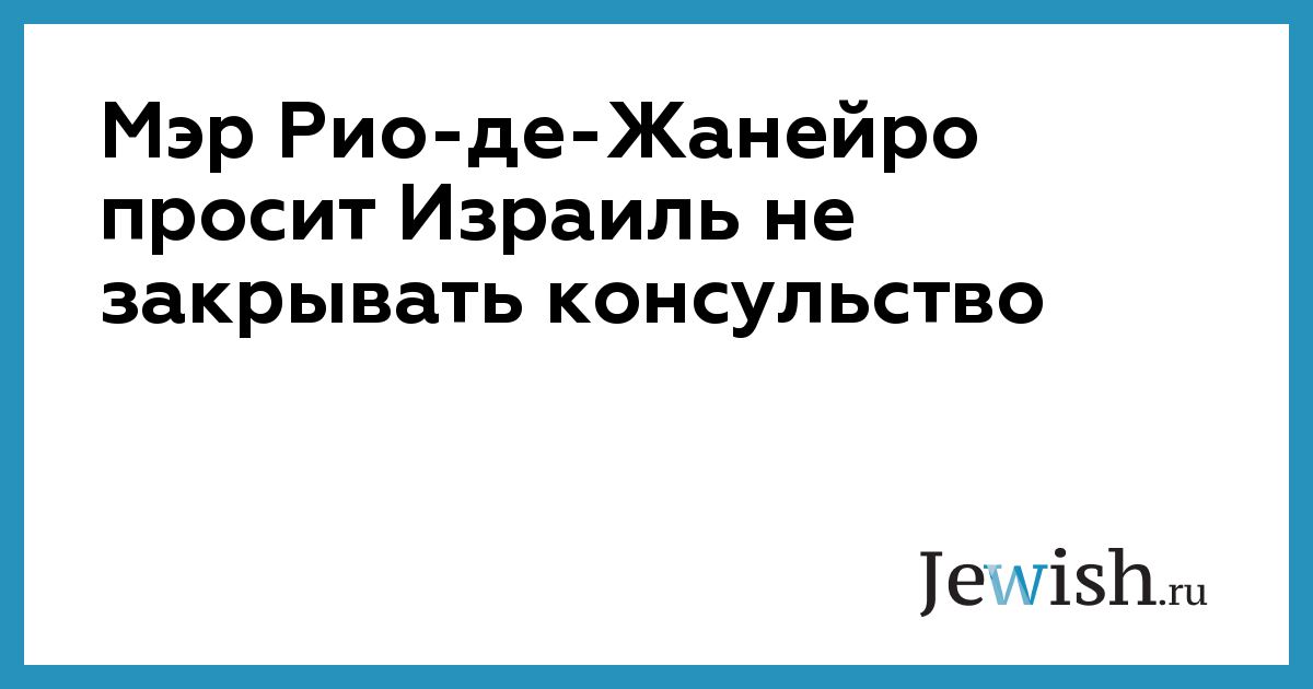 Мэр Рио-де-Жанейро просит Израиль не закрывать консульство