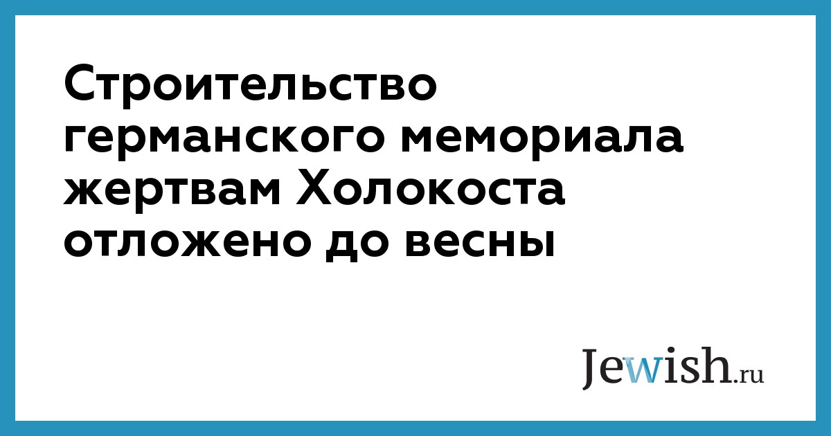 Начало строительных работ по возведению германского национального мемориала жертвам Холокоста в Берлине отложено до весны следующего года. К этому времени организаторы проекта рассчитывают найти строительную фирму, которая сможет изготовить огромные бетонные плиты, необходимые для монумента. Работы по расчистке местности под строительство мемориала были начаты еще в октябре прошлого года, когда решение о постройке мемориального комплекса было наконец принято после десяти лет дискуссий на всех властных уровнях Германии. Строительные работы также планировалось начать минувшей осенью. Однако берлинское городское ведомство по архитектуре и градостроительству до сих пор не смогло подрядить строительную фирму на изготовление 2700 больших цементных плит, из которых и будет состоять мемориальный комплекс, спроектированный американским архитектором Питером Эйзенманном. Эти плиты должны быть установлены на участке земли площадью в 19 тысяч квадратных метров рядом с Бранденбургскими воротами. Открытие мемориала первоначально было намечено на 27 января 2004 года – 59-ю годовщину освобождения Освенцима.