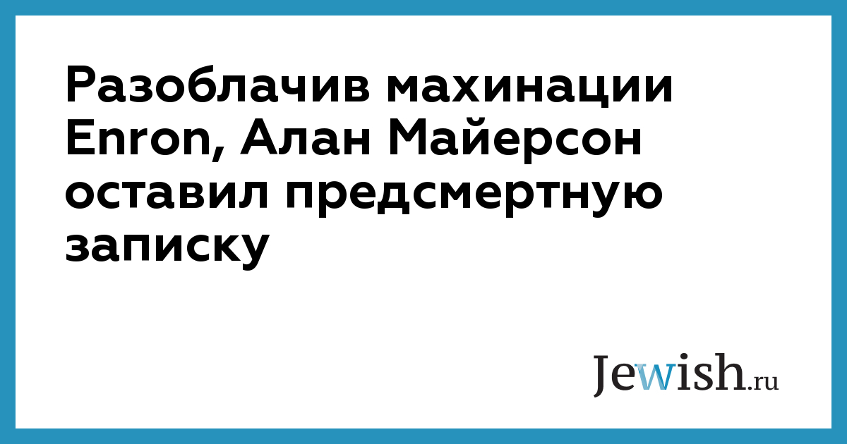 Разоблачив махинации Enron, Алан Майерсон оставил предсмертную записку