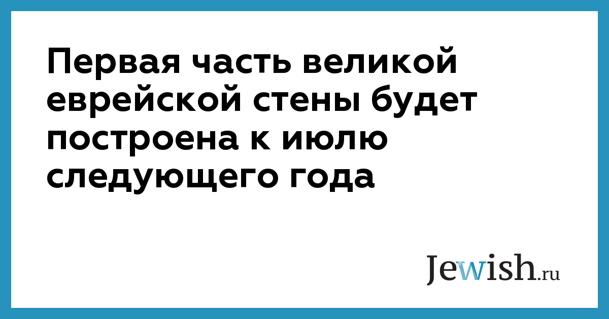 Первая часть великой еврейской стены будет построена к июлю следующего года