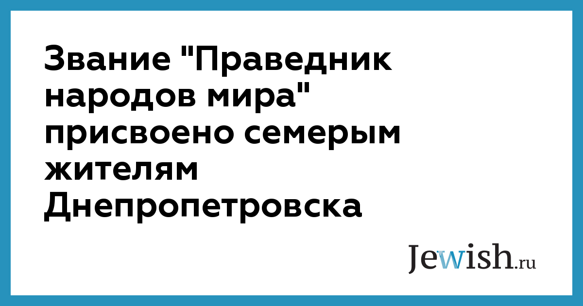 Звание "Праведник народов мира" присвоено семерым жителям Днепропетровска