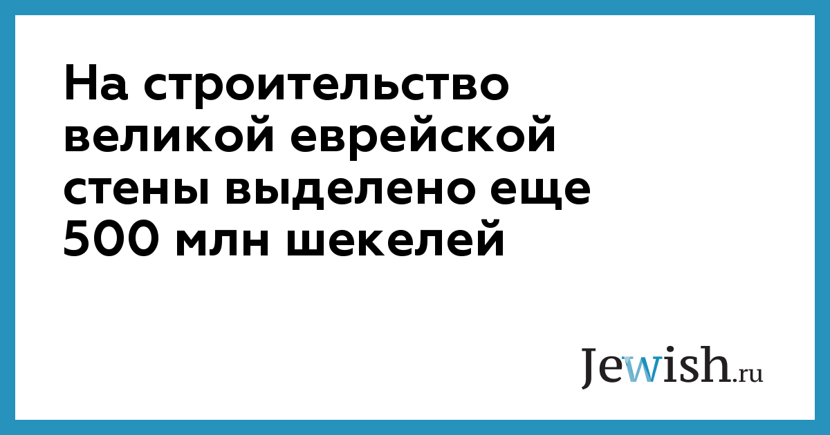 На строительство великой еврейской стены выделено еще 500 млн шекелей