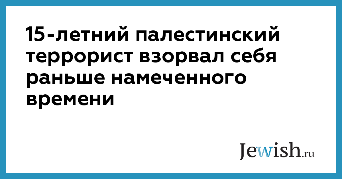 15-летний палестинский террорист взорвал себя раньше намеченного времени