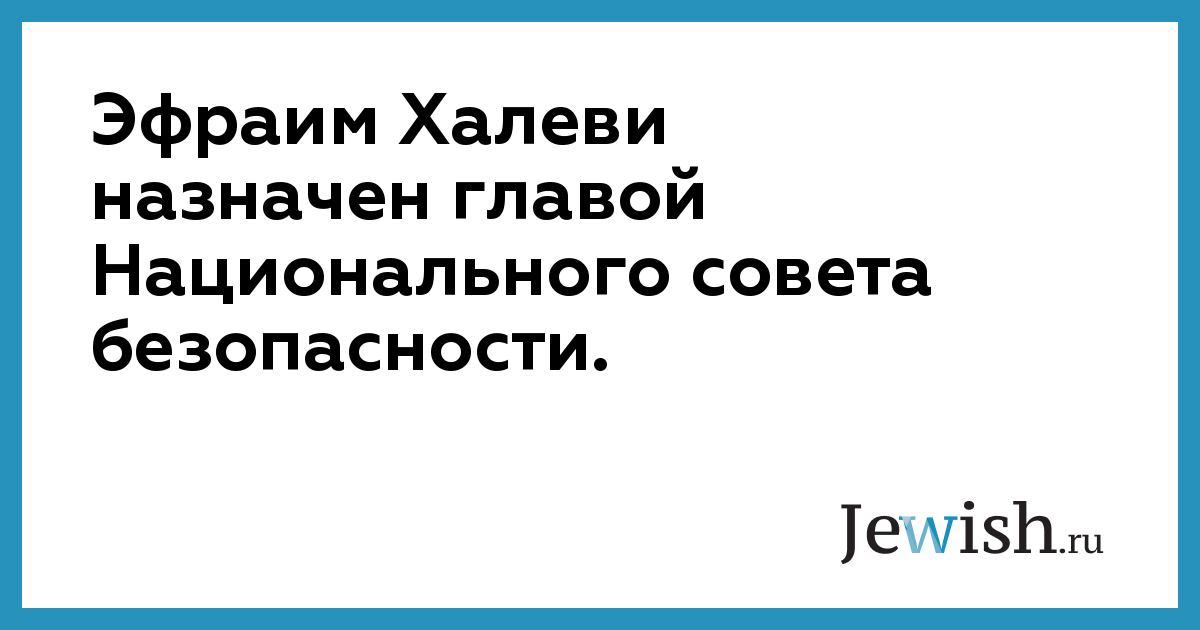 Эфраим Халеви назначен главой Национального совета безопасности.