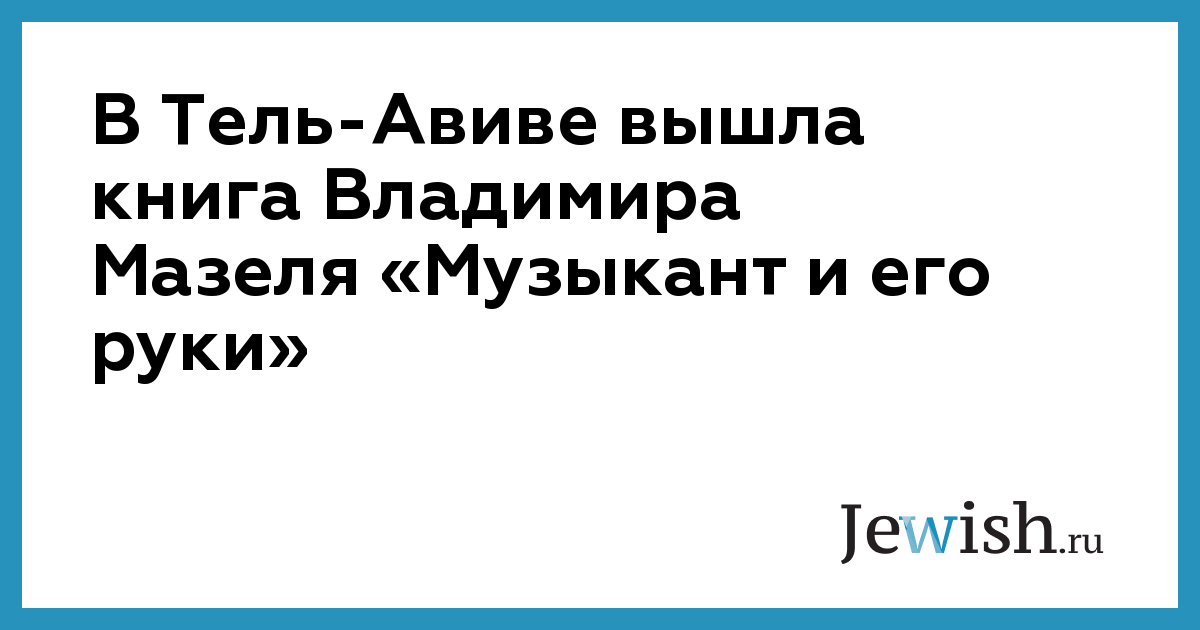 В Тель-Авиве вышла книга Владимира Мазеля «Музыкант и его руки»