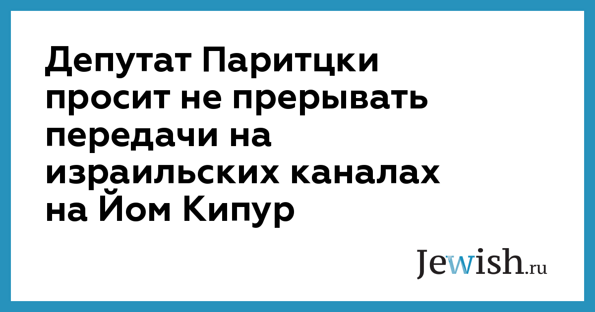 Депутат Паритцки просит не прерывать передачи на израильских каналах на Йом Кипур
