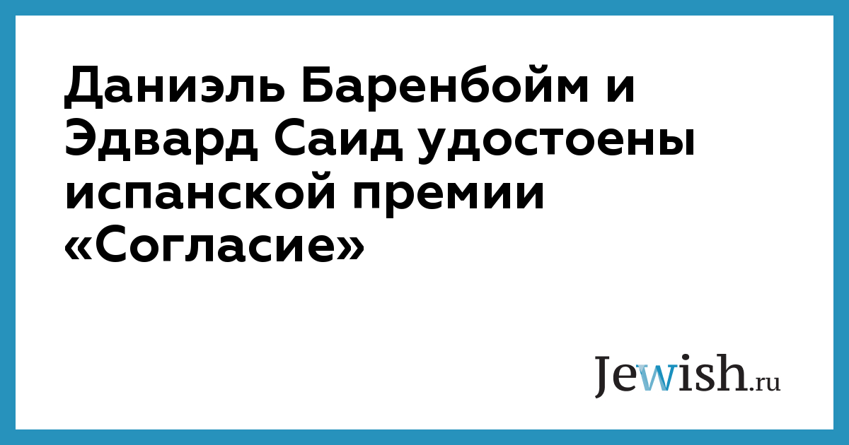 Даниэль Баренбойм и Эдвард Саид удостоены испанской премии «Согласие»
