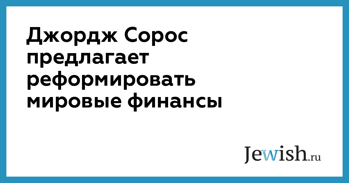 Один из крупнейших финансистов Джордж Сорос высказался за экстренную и кардинальную реформу мировой финансовой системы. В интервью французскому радио он заявил в субботу, что существующая международная валютно-денежная и финансовая система «не способна к саморегуляции, требуется ее реформа», — сказал он. В своем интервью Сорос неожиданно выступил за введение специального налога на движение финансового спекулятивного капитала. Собранные суммы, которые могут достигать в год несколько миллиардов долларов, он предложил направлять на кредитование экономик беднейших стран. После финансового кризиса 1997-1999 годов Сорос временно устранился от непосредственного управления своей финансовой системой и даже ликвидировал часть принадлежавших ему фондов. Однако год назад он вновь вернулся к активной инвестиционной деятельности и, согласно ряду источников, заработал на операциях по форвардным валютным сделкам с евро и долларом США значительные средства.