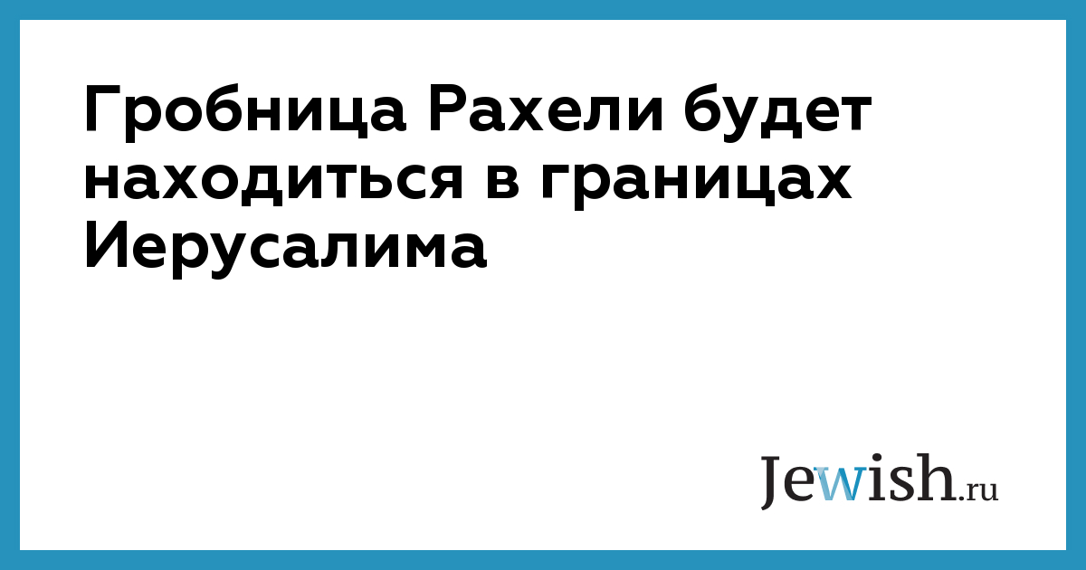 Гробница Рахели будет находиться в границах Иерусалима