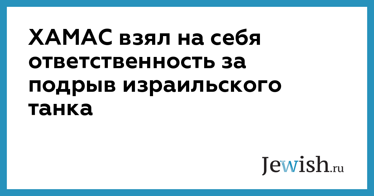 ХАМАС взял на себя ответственность за подрыв израильского танка
