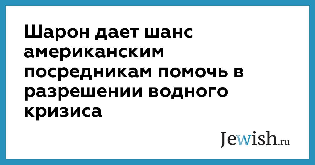 Шарон дает шанс американским посредникам помочь в разрешении водного кризиса