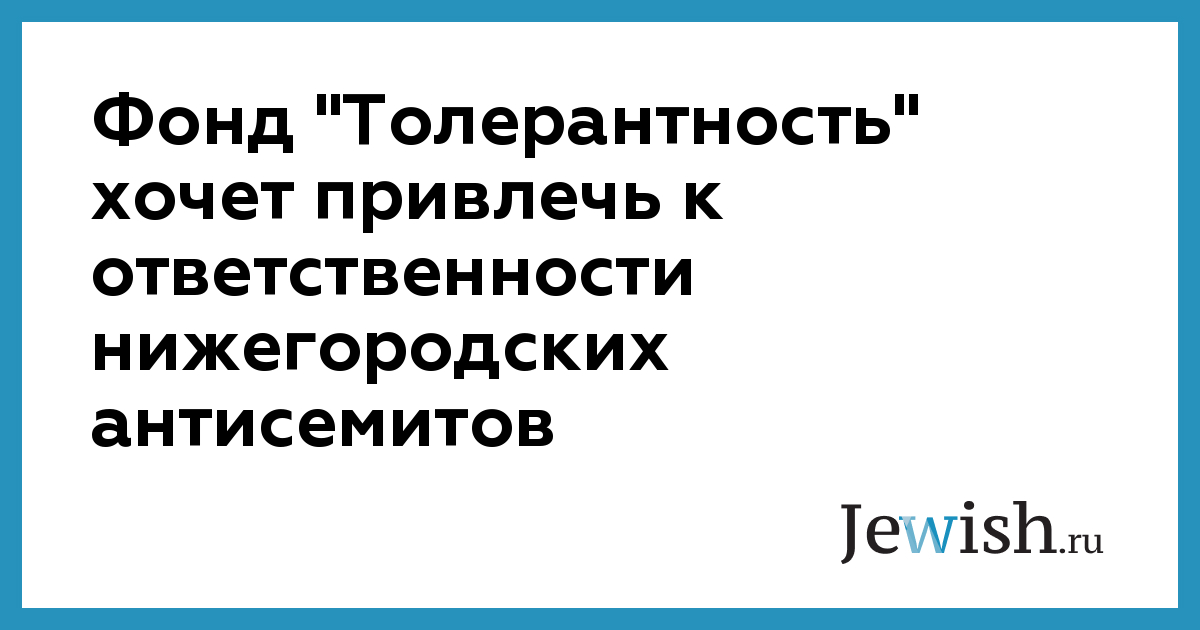 Фонд "Толерантность" хочет привлечь к ответственности нижегородских антисемитов