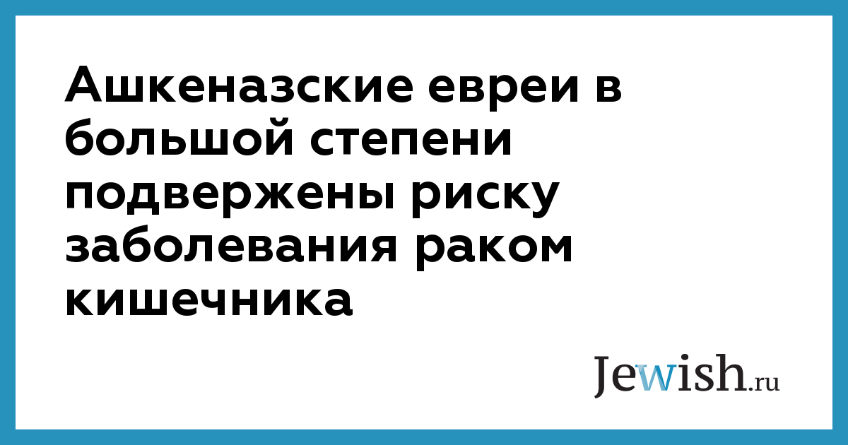 Ашкеназские евреи подвержены в два-три раза большему риску заболевания раком кишечника в том случае, если они имеют мутацию хотя бы одного гена. Такой вывод сделан во вновь опубликованном медицинском исследовании. Результаты исследования ДНК на основании изучения трех тысяч ашкеназских евреев из Нью-Йорка и северного Израиля были обнародованы в пятницу в журнале Science. Более ранние исследования показали, что мутация двух генов типа BLM приводит к тяжелому заболеванию, названному синдромом Блума. Новые данные показывают, что достаточно мутации только одного из этих генов, чтобы резко увеличился риск возникновения рака кишечника. Указанное генное нарушение – мутацию единичного гена типа BLM – имеет примерно один процент евреев восточноевропейского происхождения. Рак кишечника занимает первое место по числу умерших от раковых заболеваний в Израиле и второе – в США, хотя это тяжелое заболевание и поддается эффективному лечению на ранних стадиях развития.