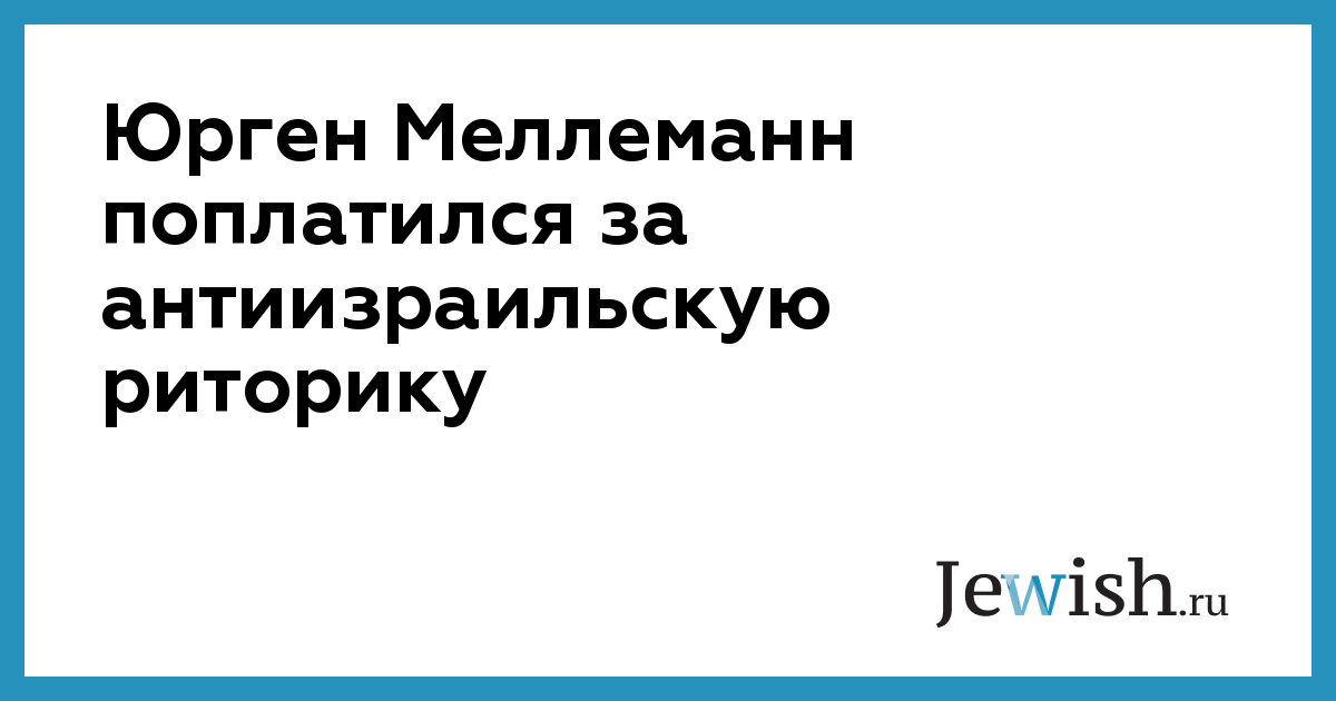 Юрген Меллеманн поплатился за антиизраильскую риторику