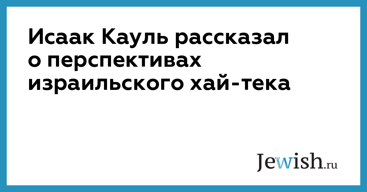 Исаак Кауль рассказал о перспективах израильского хай-тека