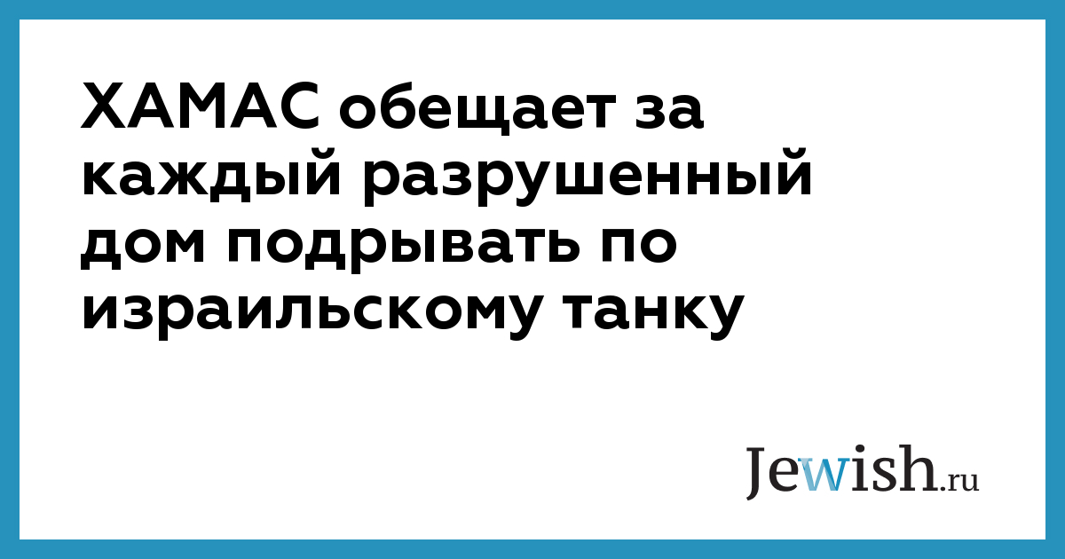ХАМАС обещает за каждый разрушенный дом подрывать по израильскому танку