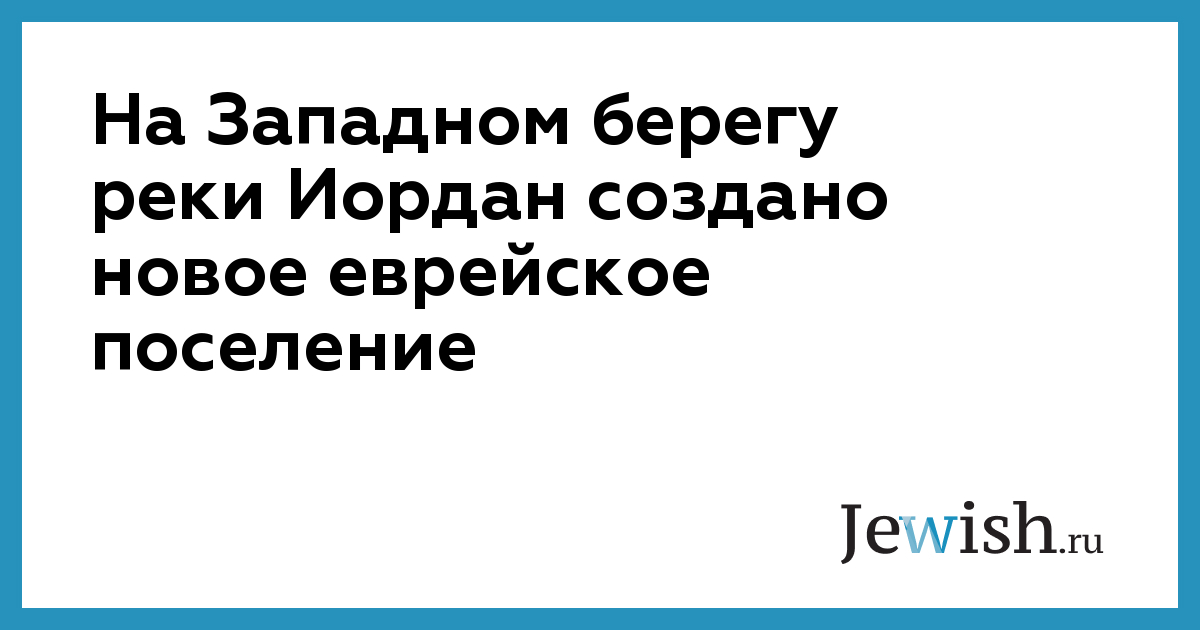 На Западном берегу реки Иордан создано новое еврейское поселение