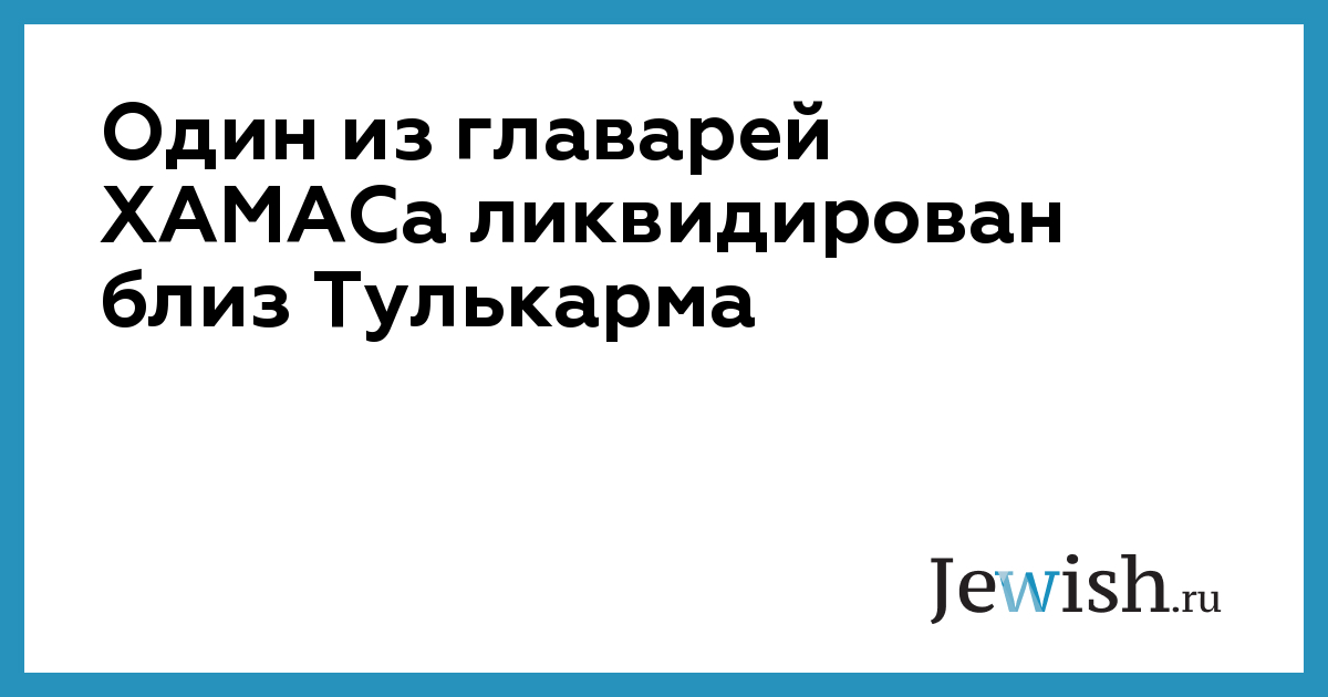 Один из главарей ХАМАСа ликвидирован близ Тулькарма