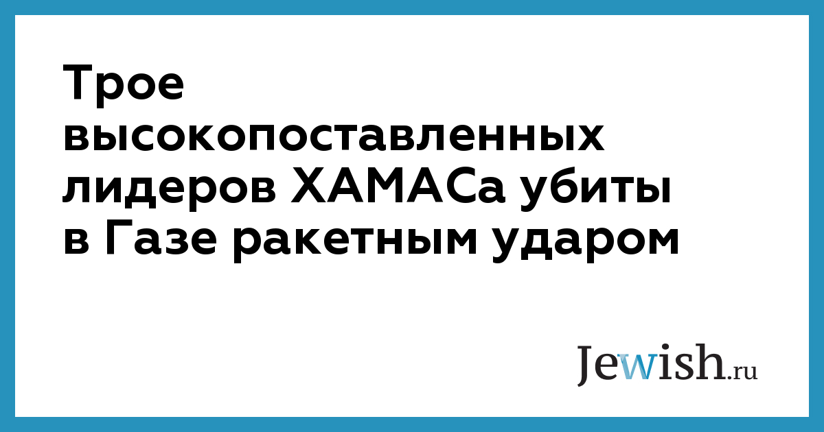 Трое высокопоставленных лидеров ХАМАСа убиты в Газе ракетным ударом