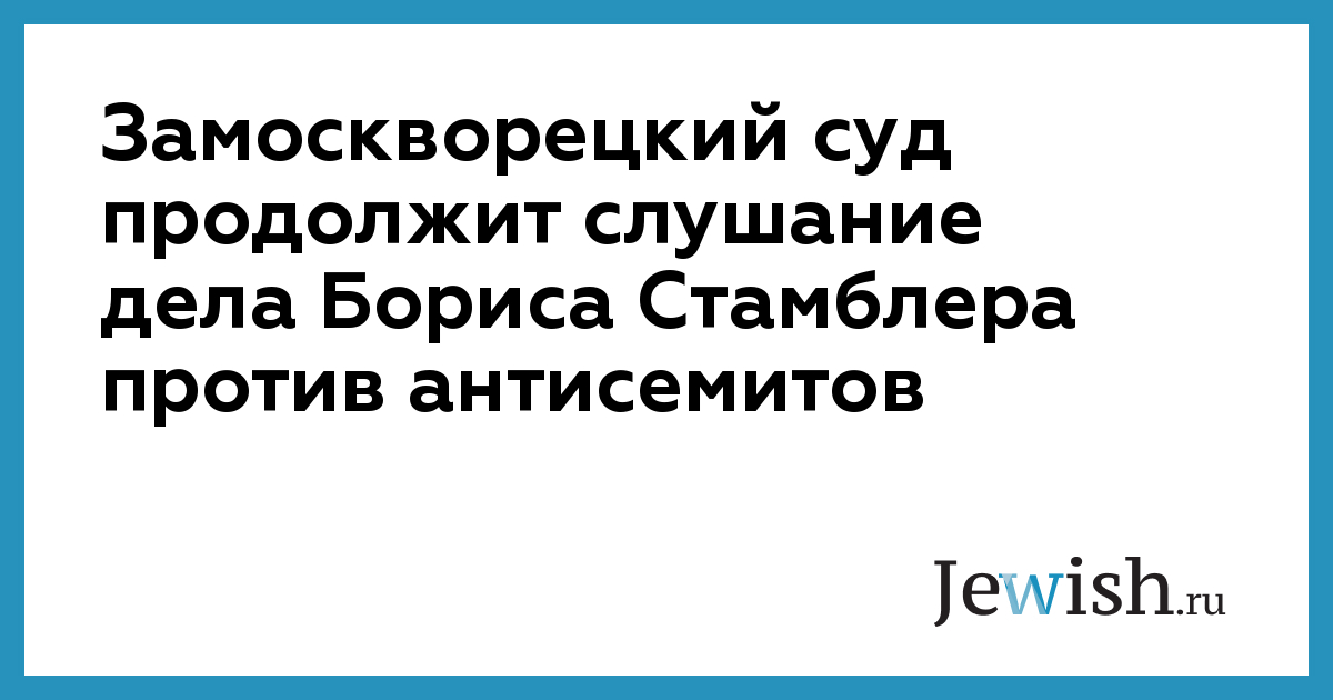 Замоскворецкий суд продолжит слушание дела Бориса Стамблера против антисемитов