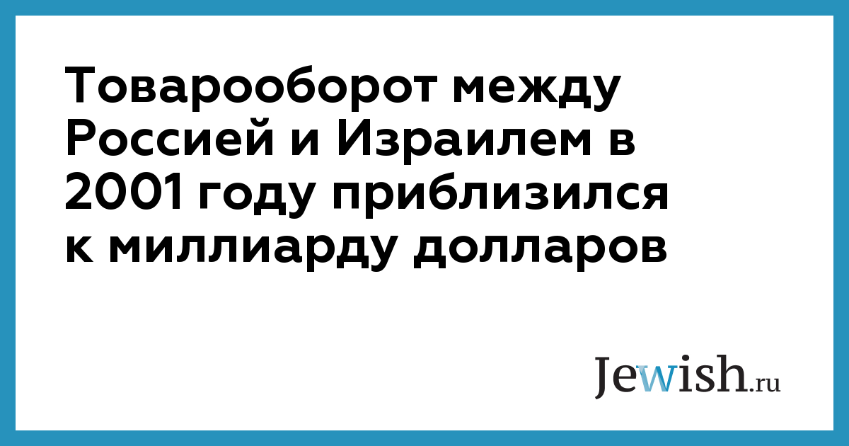 Товарооборот между Россией и Израилем в 2001 году приблизился к миллиарду долларов