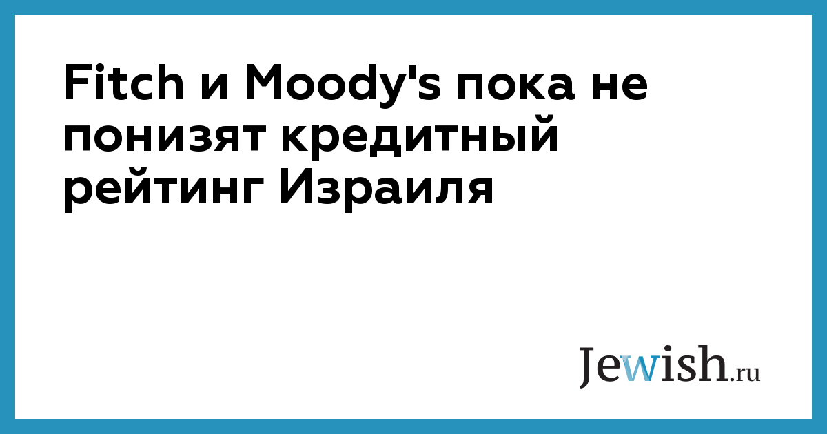 Fitch и Moody's пока не понизят кредитный рейтинг Израиля