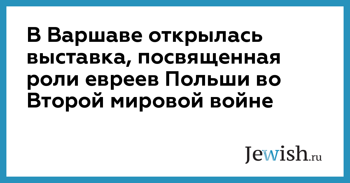 В Варшаве открылась выставка, посвященная роли евреев Польши во Второй мировой войне