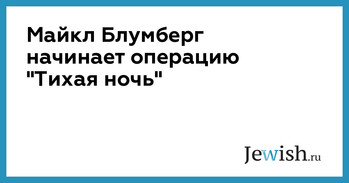 Майкл Блумберг начинает операцию "Тихая ночь"