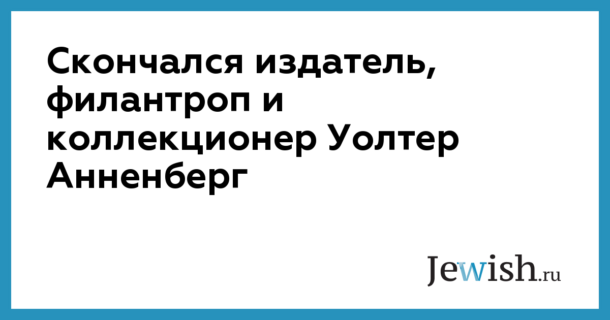 Скончался издатель, филантроп и коллекционер Уолтер Анненберг