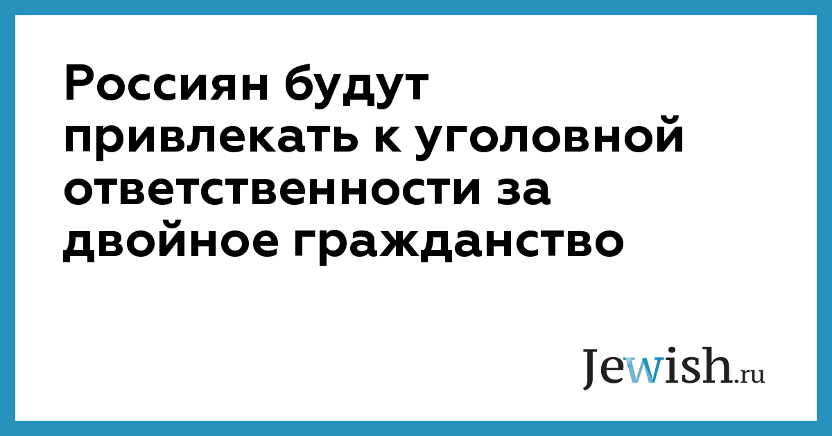 Российские граждане, сумевшие приобрести гражданство иностранного государства (двойное гражданство) в ходе временного пребывания за пределами России, будут привлекаться к уголовной ответственности. Уголовное наказание за "двойное гражданство" предусмотрено законом "О внесении дополнений в Уголовный кодекс Российской Федерации", который комитет Госдумы по законодательству подготовил к первому чтению. К ответственности будут привлекаться лица, которые приобрели двойное гражданство в "корыстных целях незаконным путем", отметили в пресс-центре нижней палаты Федерального Собрания. В законопроекте предлагается целый ряд наказаний за получение "двойного гражданства" указанным образом. Речь идет о штрафах в размере от двухсот до пятисот минимальных размеров оплаты труда (МРОТ) или в размере иного дохода осужденного за период от двух до пяти месяцев, принудительных работах на срок от ста двадцати до ста восьмидесяти часов, либо аресте на срок до четырех месяцев. За то же деяние, совершенное неоднократно, законопроект предусматривает наказание в виде штрафа размером от пятисот до восьмисот МРОТ, принудительных работх на срок от четырех до шести месяцев, либо лишения свободы на срок до двух лет.