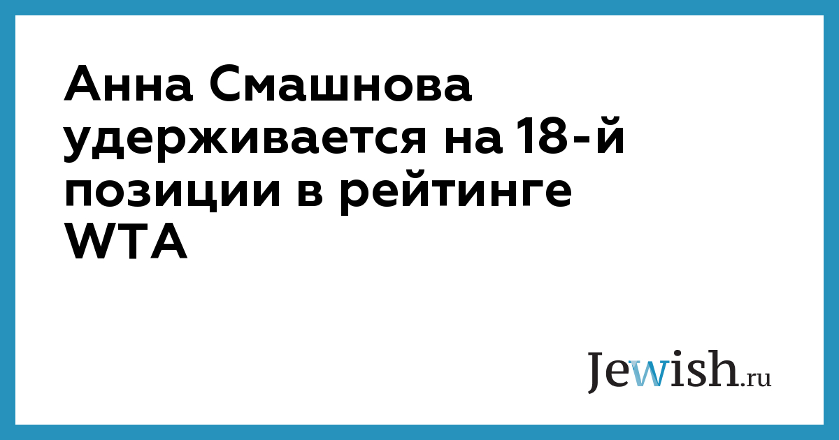 Анна Смашнова удерживается на 18-й позиции в рейтинге WTA