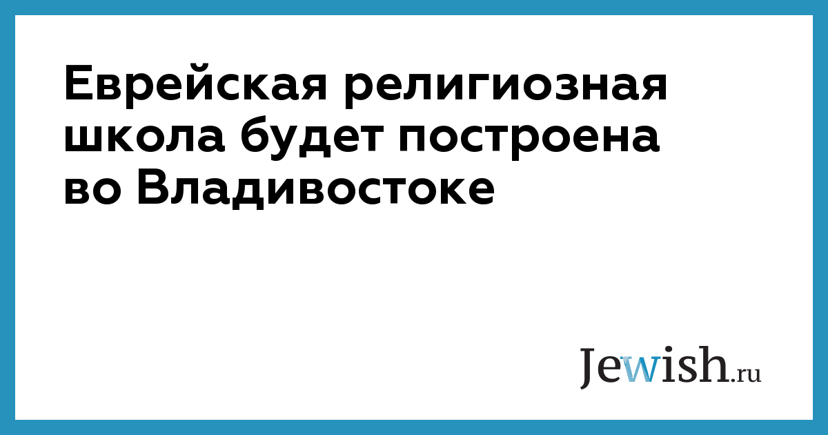 Еврейская религиозная школа будет построена во Владивостоке