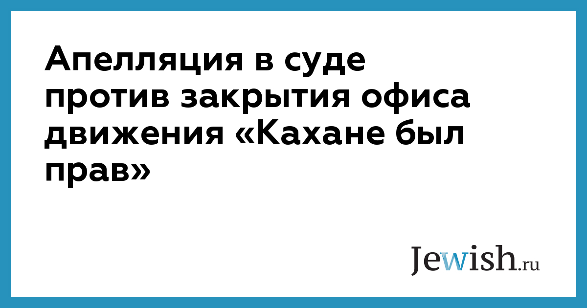 Апелляция в суде против закрытия офиса движения «Кахане был прав»