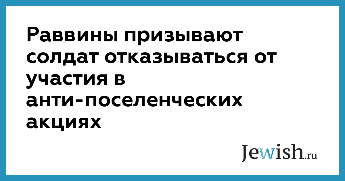 Раввины призывают солдат отказываться от участия в анти-поселенческих акциях