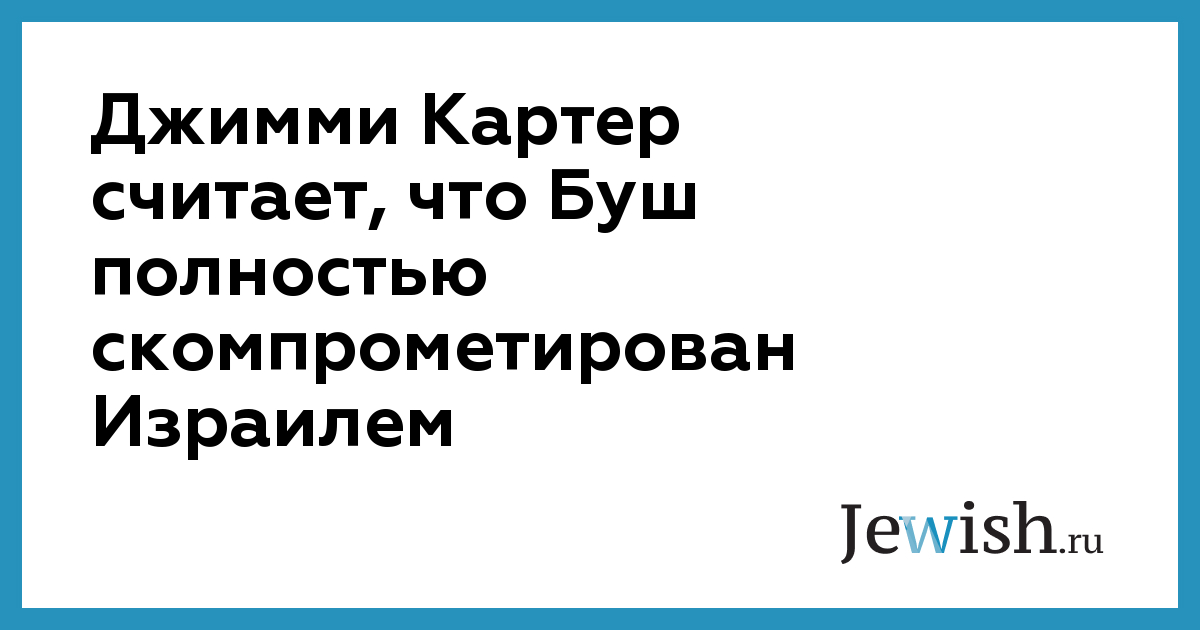 Бывший президент США Джимми Картер во второй раз со времени получения Нобелевской премии Мира выступил против действующего американского президента Джорджа Буша. Если в первый раз Дж.Картер критиковал планы Дж.Буша по развязыванию войны против Ирака, то теперь лауреат Нобелевской премии Мира обвинил Дж.Буша в том, что последний "находится в кровати" с Израилем и прекратил все усилия, которые предпринимали все другие руководители США для того, "чтобы добиться примирения между израильтянами и палестинцами". "Сделано очень мало ... Мы полностью скомпрометированы израильтянами. Мы находимся в кровати, если так можно выразиться, с израильтянами и не говорим с палестинскими лидерами", — заявил, в частности, Дж.Картер в интервью Sky Radio Network. Бывший президент США Дж.Картер, который был награжден Нобелевской премией Мира за установление мира между Египтом и Израилем, подчеркнул, что сейчас Дж.Буш не в состоянии посадить обе стороны конфликта за стол переговоров. "Необходимо иметь доверие обеих сторон, необходимо сотрудничать равнозначно с обеими сторонами, мы этого не делаем", — заявил Дж.Картер.
