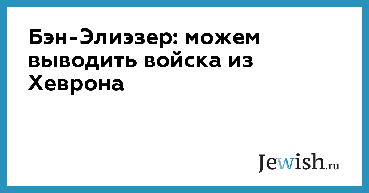 Бэн-Элиэзер: можем выводить войска из Хеврона