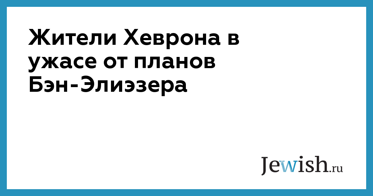 Жители Хеврона в ужасе от планов Бэн-Элиэзера