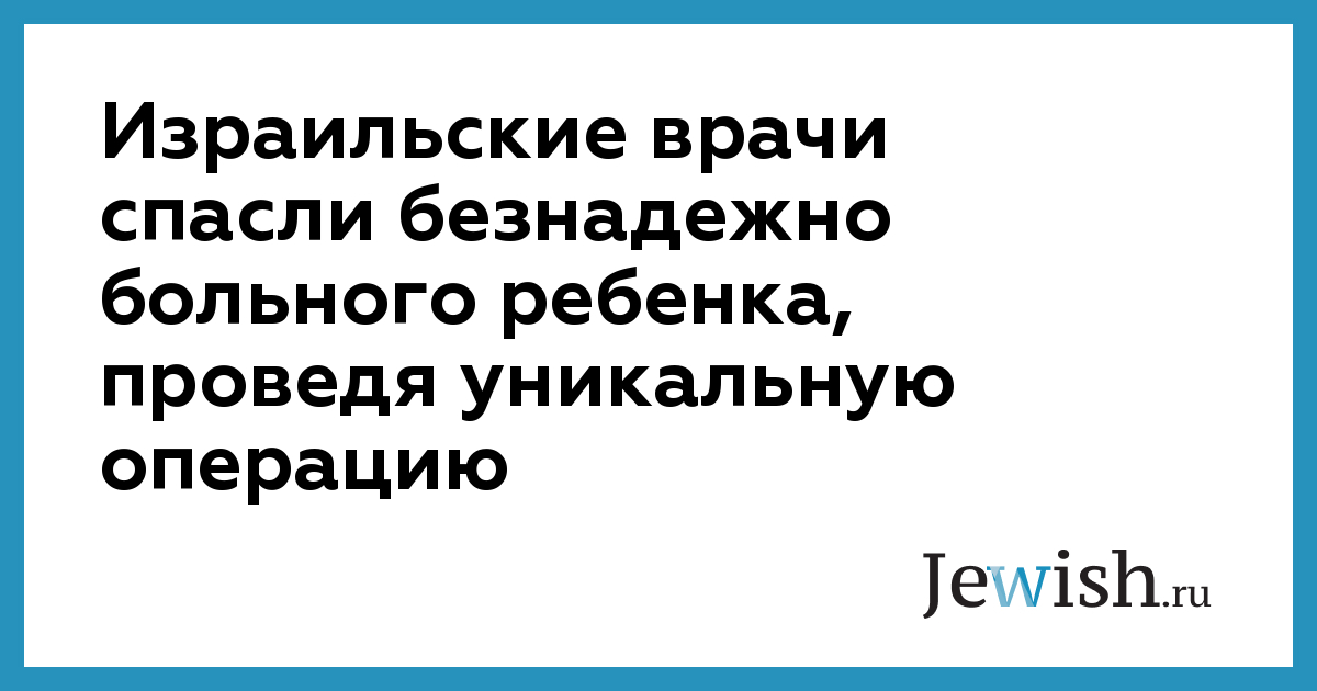 Израильские врачи спасли безнадежно больного ребенка, проведя уникальную операцию