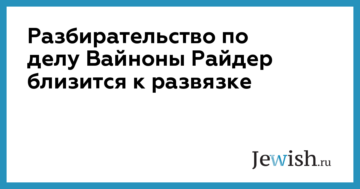 История с разбирательством по делу Вайноны Райдер, которая обвиняется в попытке кражи одежды из бутика на крупную сумму денег и хранении наркотиков, близится к развязке. На последнем заседании суда, состоявшемся в городе Беверли-Хилз штата Калифорния, судья отклонил обвинения против актрисы в хранении запрещенных препаратов, которые были выдвинуты после того, как при задержании у нее были обнаружены таблетки от обезболивания. Адвокатам актрисы потребовалось десять месяцев, чтобы предъявить суду доказательства того, что это лекарство было выписано лечащим врачом, хотя и приобретено Райдер без рецепта. На этом же заседании было вынесено решение о том, что слушания по делу о попытке выноса из магазина товаров на сумму около $5.000 начнутся 24 октября. Впервые за все время следствия в защиту актрисы публично выступили ее родители, назвав это дело "охотой на ведьм". Они также отметили ее честность и чувство юмора, благодаря которому Райдер смогла достойно вынести это испытание, которое длится уже почти год. Актриса с иронией рассказывала о происшедшем с ней в популярной сатирической программе "Saturday Night Life" и даже появилась на обложке одного из модных журналов в "бесплатной футболке от Вайноны Райдер". Предполагается, что судебные заседания продлятся семь дней, один из которых уйдет на выбор присяжных заседателей. После того как в сентябре стороны отказались от мирового соглашения, актрисе грозит максимальный срок заключения — до трех лет.