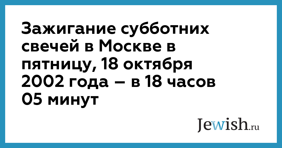 Зажигание субботних свечей в Москве в пятницу, 18 октября 2002 года – в 18 часов 05 минут