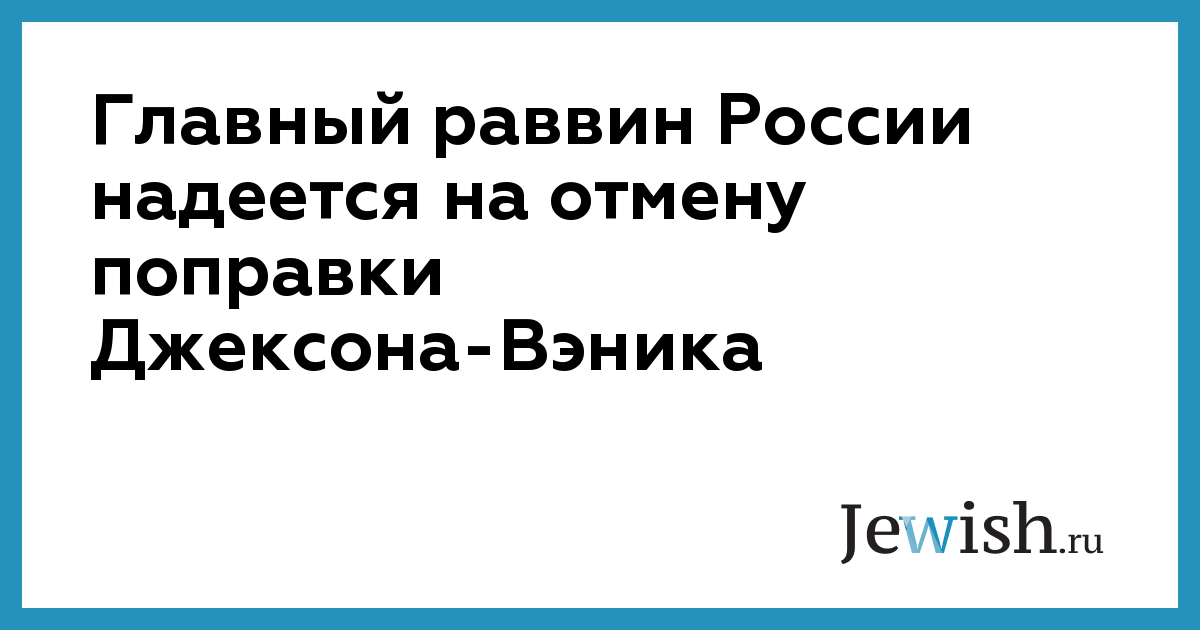 Главный раввин России надеется на отмену поправки Джексона-Вэника