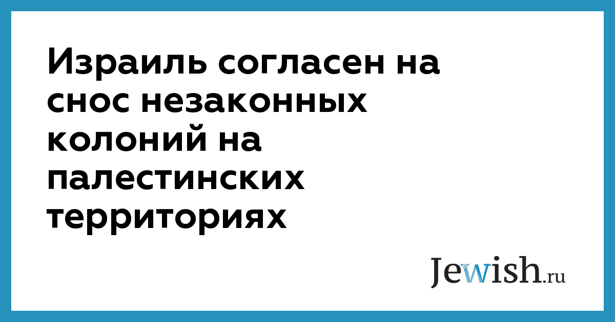 Израиль согласен на снос незаконных колоний на палестинских территориях