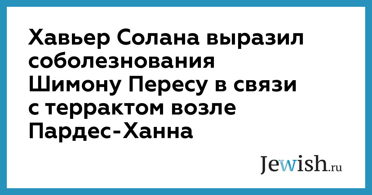 Генеральный секретарь Совета Европейского союза, верховный представитель ЕС по внешней политике и безопасности Хавьер Солана выразил соболезнования главе израильского внешнеполитического ведомства Шимону Пересу в связи с терактом на севере Израиля. Солане пришлось сделать это практически сразу после совместной с Пересом пресс-конференции, которая состоялась в понедельник по итогам заседания Совета ассоциации ЕС-Израиль. Перес пообещал Евросоюзу выполнить меры, выдвинутые "ближневосточной четверкой", а Солана назвал совещание с израильским министром лучшим из всей серии встреч с представителями Израиля, в которых он участвовал в последние месяцы. В тексте заявления, который Солана позднее распространил в Люксембурге, где проходит Совет министров иностранных дел ЕС, генсек сообщил о своей скорби и осудил теракт, приведший к гибели и ранениям многих людей. Он также выразил сочувствие семьям жертв этого преступления. Генсек Совета ЕС подчеркнул, что это произошло в тот момент, когда "оба народа, как никогда, нуждаются в прекращении кровопролития и возобновлении сотрудничества на пути к диалогу и миру".