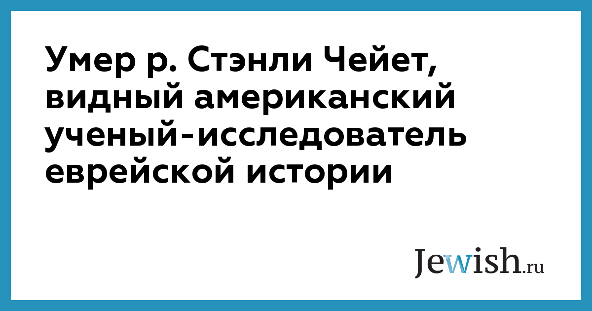 Умер р. Стэнли Чейет, видный американский ученый-исследователь еврейской истории