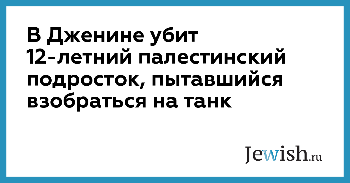 В Дженине убит 12-летний палестинский подросток, пытавшийся взобраться на танк